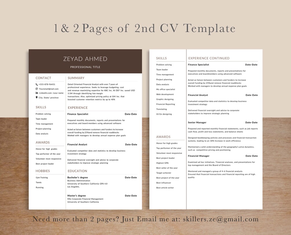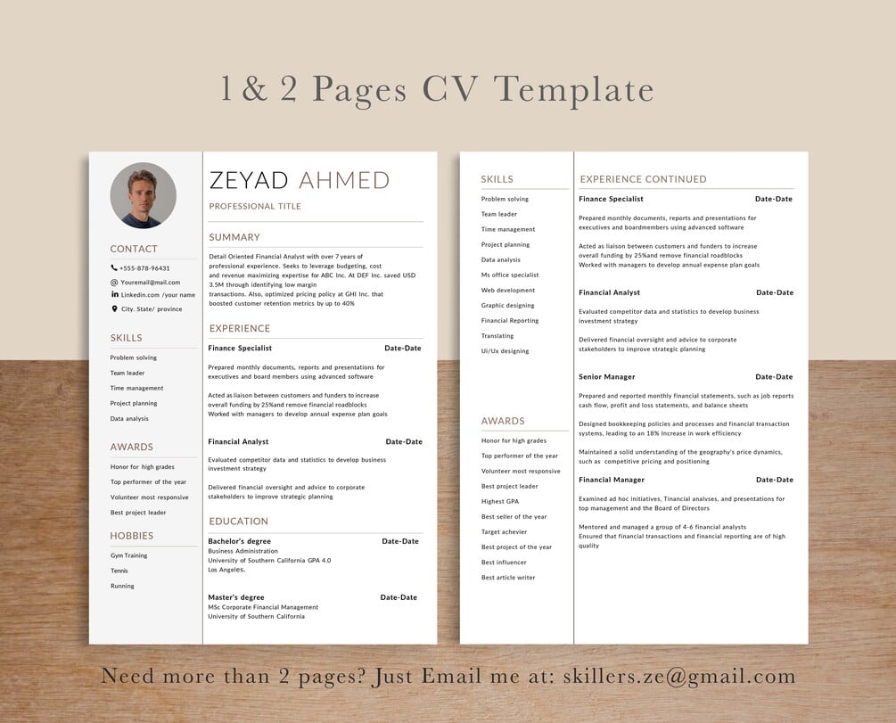 2 Resume Template, Professional Modern Resume Template Compatible with Mac Pages, Microsoft Word, Modern Executive Resume Template 2023, CV Template